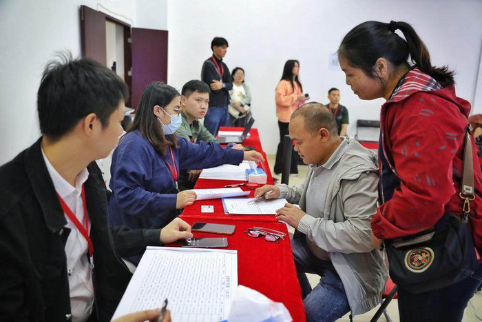 活动现场人头攒动,气氛热烈。参与选房的村民按照选房顺序,依次通过签到区、等候区、选房区,最后选择心仪的房子。